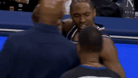 76人抢下篮板,纳斯在场边疯狂喊着暂停