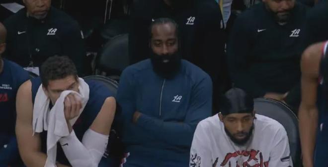 哈登全场比赛迷失,在20分钟内6投2中仅得11分2篮板3助攻。