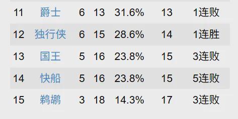 至此,快船只有5胜16负,排名西部倒数第二。