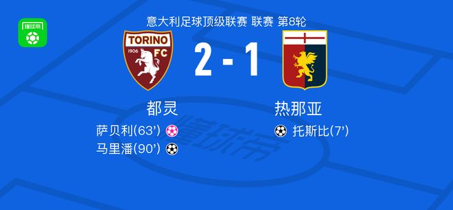 北京时间10月26日,意大利足球顶级联赛第8轮展开较量,都灵坐镇主场迎战热那亚。比赛伊始,客队率先打破僵局,托斯比攻入一球,为热那亚取得领先。此后双方均未能改写比分,直至第63分钟,萨贝利不慎自摆乌龙,将球误入本方球门,都灵借此扳平比分。临近比赛结束,拉扎罗送出关键助攻,马里潘抓住机会完成破门,帮助都灵实现反超。最终,都灵以2比1逆转战胜热那亚,全取三分。